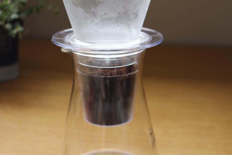 粗挽きで抽出したので、わずか1時間半ほどで80%が抽出されています。粉をいれている上部を外せば、このまま冷蔵庫にいれて保管できます。
