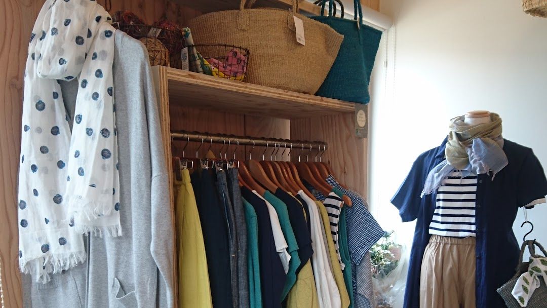 「大人が3人入ったらいっぱいになってしまう」という店内には、三室さんご自身がセレクトしたフェアトレードのアパレル、雑貨、食品、コーヒー等々がとてもすっきりと見やすくディスプレイしてあるので安心してお買い物できる空間です。